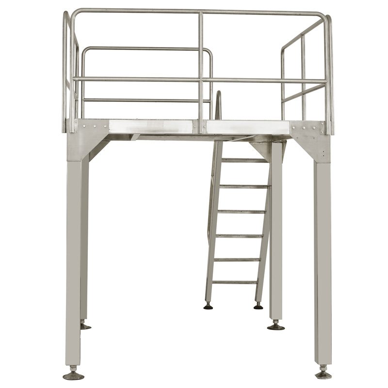 Working Platform The platform is compact stable and safe with guardrail and ladder. Made of 304# stainless steel or painted steel. Dimension (mm):1900(L) X 1900(W) X 1800-2000(H). Customizable Get Quotes